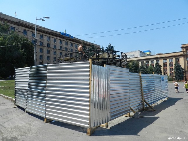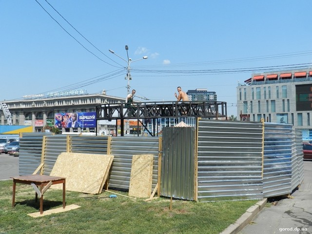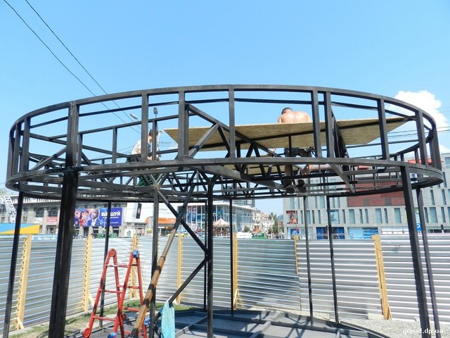«Победил» центр. На площади Героев Майдана уже 15 августа должны открыть первый такой центр. Представляет он собой МАФ достаточно легкой и изящной формы. Курирует строительство и будет заниматься благоустройством прилегающей территории коммунальное предприятие «Розвиток Дн іпра». Трудится над объектом бригада ООО «Фаст Билд».