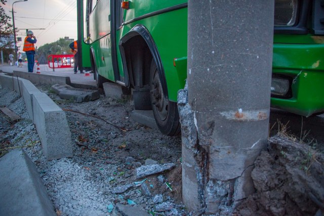 Авария случилась примерно в 18:50. «118-я» ехала в сторону центра. Водитель не справился с управлением и врезался в столб. Сам виновник аварии объясняет, что авария случилась из-за того, что солнце заслепило ему глаза.