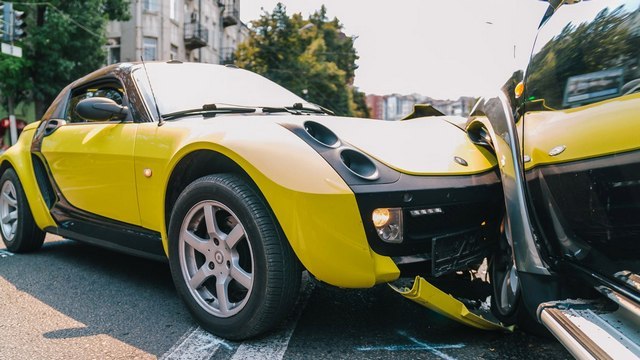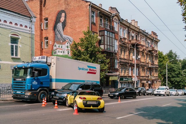 Когда девушка на Smart сворачивала на Андрея Фабра вниз, то не справилась с управлением и въехала в Mitsubishi.