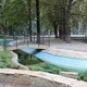 Если раньше, чтобы попасть на закрытую из-за ремонта территорию парка, приходилось ругаться с охраной, и идти на различные хитрости, то теперь, в парк может попасть любой желающий. У центрального входа, возле Центра внешкольной работы и детского творчества, виднеется огромная дыра в заборе, через которую, мы и попали на территорию зоны отдыха. Работа кипела: рабочие укладывали плитку, устанавливали подсветку арки и аттракционов, расстилали рулонные газоны, высаживали деревья. Может потому, что работы еще не закончены, пока нет ощущения, что парк очень изменился. Скорее, стал более аккуратным и современным. Пешеходные дорожки выложены новой плиткой, установлено большое количество новых скамеек. Полностью оборудована универсальная площадка для игры в футбол, волейбол и баскетбол и скейт-зона.