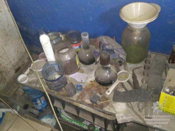 60 г психотропного вещества «метамфетамин», 175 таблеток лекарственного препарата «Ефина», электронные весы, пустые слип-пакеты, разнообразное лабораторное оборудование и прекурсоры для изготовления метамфетамина обнаружили сотрудники управления противодействия наркопреступности в одном из гаражей в Кривом Роге.