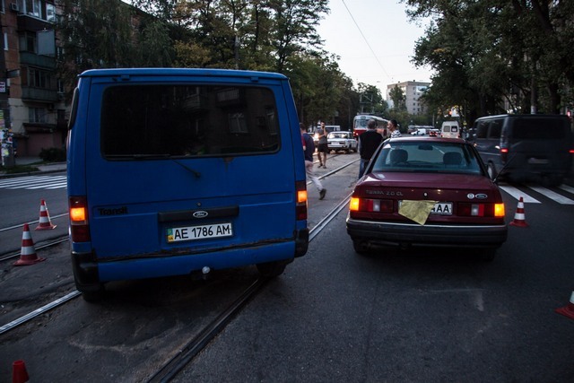 По словам водителя ВАЗ, он не успел вовремя остановиться из-за проблем с тормозами и выехал на трамвайные пути, зацепив микроавтобус Ford.
