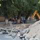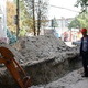 На месте порыва трубы работают мастера КП «Теплосети». Они разрывают дорогу, чтобы добраться до поврежденного участка трубы.
