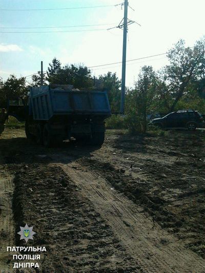 30 сентября, около 2 часов дня водный патруль проверял береговую зону реки Шиянки в Приднепровске. Там полицейские заметили грузовой автомобиль КАМАЗ со строительным мусором.