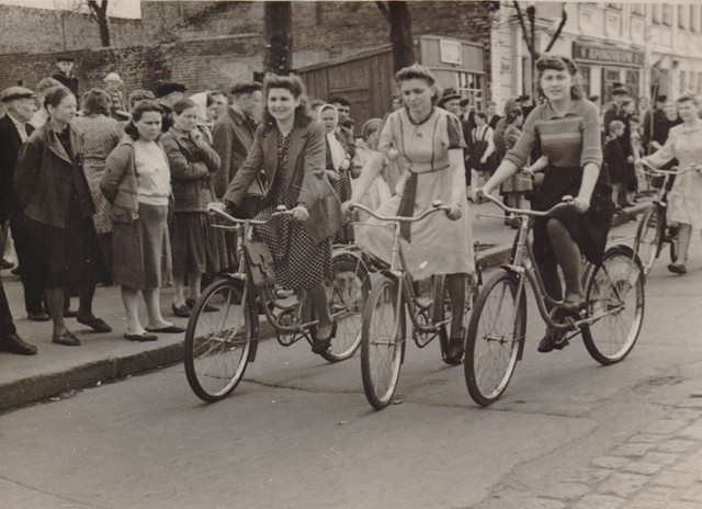 На знімках – велосипедистки на першотравневій демонстрації; парк імені Тараса Шевченка; один із двох бонів на Дніпрі: перший, із танцювальним міні-майданчиком, належав вагонобудівному заводу імені газети «Правда», а на іншому (ДДРЕСівському) збиралися любителі доміно та шахів.