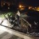Автомобиль врезался в электроопору, после чего его развернуло, закрутило и он врезался в другую электроопору, от чего они обе рухнули на дорогу.