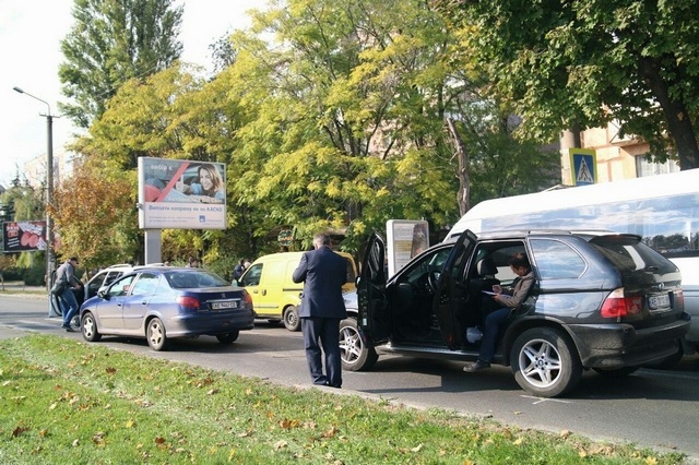 Водитель BMW, не выдержав дистанцию, ударил стоящий впереди Peugeot. Он, в свою очередь, по принципу домино, протаранил Geelly.