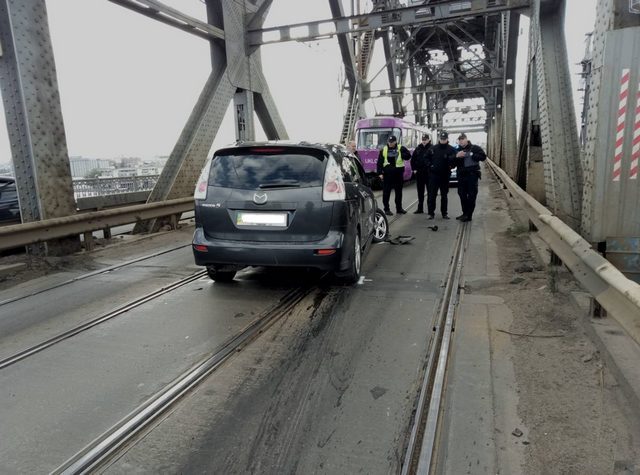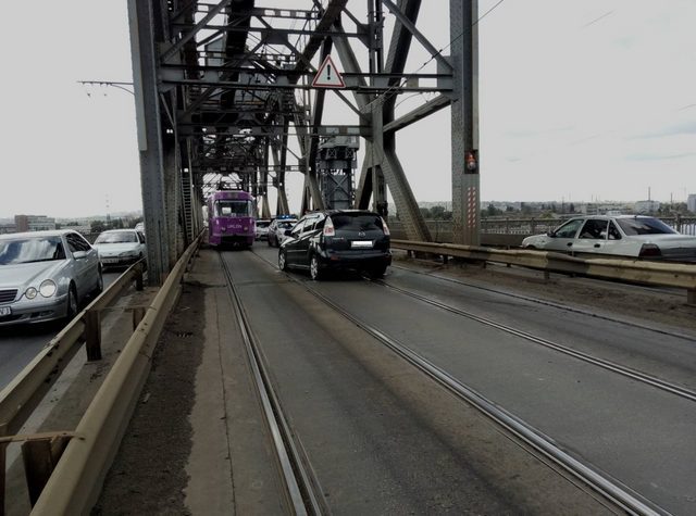 16 октября на Старом мосту произошло ДТП. Вследствие аварии до середины моста со стороны правого берега образовалась длинная пробка. Затруднено движение автомобилей и трамваев.