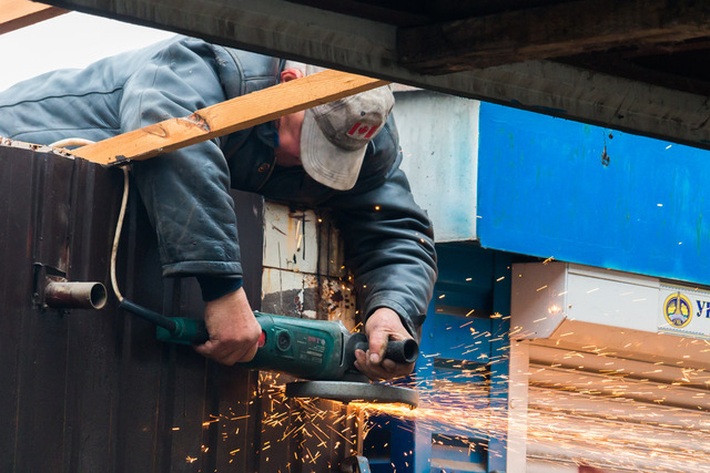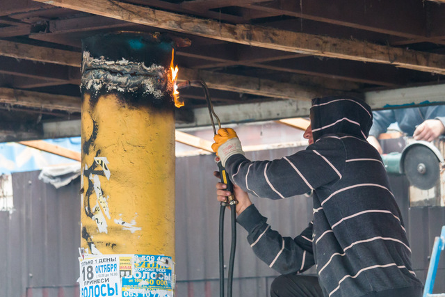 Рабочие разбирают каркас старой остановки. Об этом Информатор сообщает с места события.