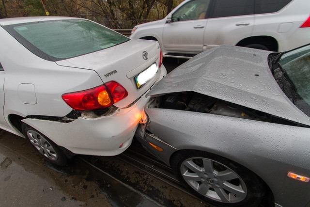 Автомобили Mazda, Kia и Toyota стояли на съезде со Старого моста на красный сигнал светофора, а Nissan ехал за ними. Последний въехал в Toyota и по цепной реакции пострадали Mazda и Kia.