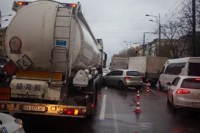 ДТП с бензовозом остановило сотни машин на Слобожанском проспекте