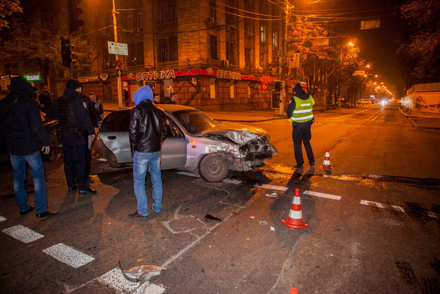 Об этом Информатор сообщает с места события. Водитель автомобиля Daewoo Nubira Дмитрий сообщил, что ехал по проспекту Дмитрия Яворницкого, как вдруг в него врезался автомобиль Daewoo Lanos, ехавший по улице Михаила Грушевского.