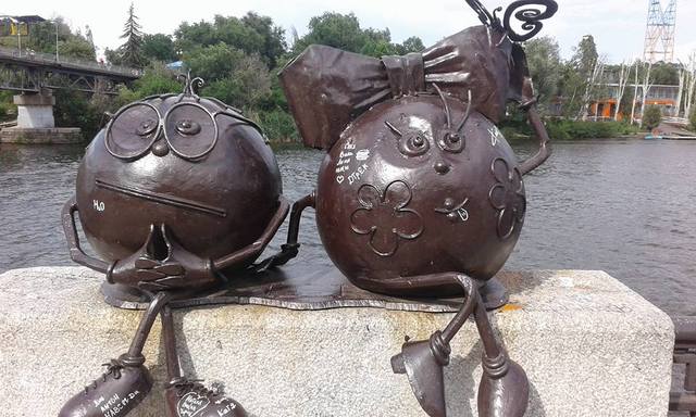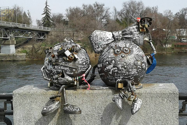 Стремление жителей Днепра «увековечить» свою любовь опять приводит эти скульптурные композиции на набережной в неэстетический вид.