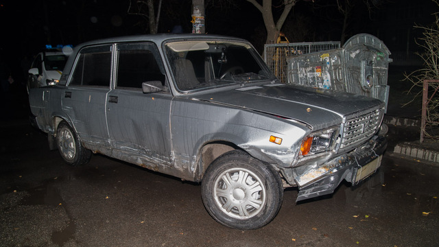 Volkswagen Passat протаранил припаркованный ВАЗ. Протащив автомобиль метров двадцать, Passat врезался в припаркованный Chevrolet и отбросил машину в сторону автомобиля Subaru.