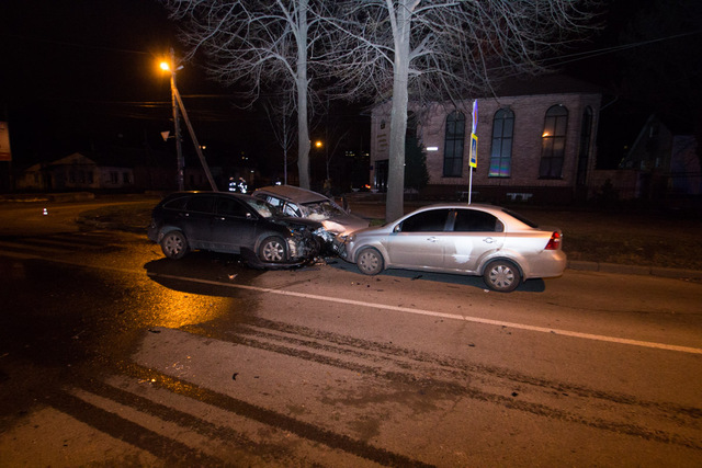 19 декабря около 21:00 Opel, Honda и Chevrolet столкнулись на улице Владимира Антоновича. Есть пострадавшие. Улицу перекрыли в целях безопасности (на дороге находится взрывоопасное вещество).