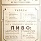 В этом же календаре «Весь Екатеринославе» есть список пивных. Так вот, в 1913 году в нашем городе было целых 47 (!) пивных . Интересно, что самая широкая сеть пивных принадлежала… тому же самому заводу Ф.Ф. Ботте и наследников – целых 22 пивных. Кроме того, завод Ботте имел и собственный ресторан – прямо в здании предприятия.