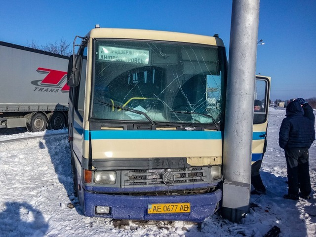 На трассе под Днепром автобус с пассажирами въехал в столб