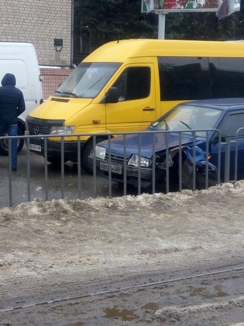 Сегодня, 30 января, в Днепре произошло дорожно-транспортное происшествие по пр. Б. Хмельницкого. Столкнулись «ВАЗ» и микроавтобус «Мерседес».