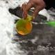 «Флуоресцеин натрия в щелочной среде приобретает интенсивную зеленую окраску, которая дает свечение в темноте, - рассказывает Татьяна Дробот. -Добавляем его, чтобы потребители, которые могут несанкционированно отбирать воду, не пользовались ей. Такая вода, если попадает в ливневые и канализационные колодцы, позволяет определить, где произошла утечка или несанкционированный забор по свечению. После запуска создается рабочая группа, которая их видит и устраняет. Ни окружающей среде, ни сетям, вреда этот краситель не приносит. Например в медицине он используется для диагностики заболеваний».Сотрудники коммунального предприятия продемонстрировали журналисту, как выглядит краситель на открытой местности.