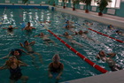 Плавательная спортивная программа началась с инструктажа и небольшой разминки. Далее все участники выполнили комплекс оздоровительных упражнений и смогли свободно поплавать.