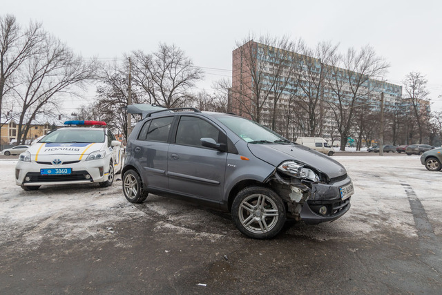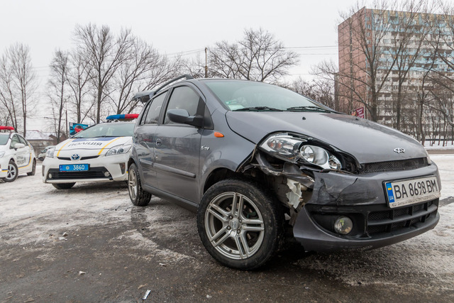 По словам лейтенанта патрульной полиции Петроченкова Дмитрия, Prius стоял на парковке в ожидании вызова, а Chery в это время заезжал на парковку. Водитель Chery хотел припарковаться, но на снегу авто начало заносить, водитель не справился с управлением и въехал в Prius. Об этом сообщает Информатор с места события.