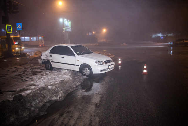 7 марта около 22:30 на Запорожском шоссе случилось ДТП. Столкнулись автомобили Daewoo и Geely.