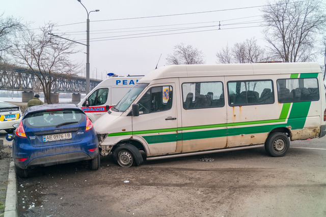 Водитель маршрутки решил перестроиться и начал маневр. Совершая его, он протаранил легковой автомобиль.