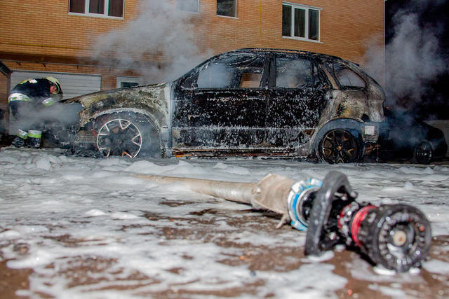 Возле горящего BMW были припаркованы еще четыре иномарки, но спасателям удалось потушить пожар до того, как пламя перебросилось на другие автомобили. При этом, из-за высокой температуры, расплавилась часть кузова Infiniti, находившегося возле горящего авто. Схожие повреждения получил Mercedes: у авто вздулась фара, расплавилась часть бампера.
