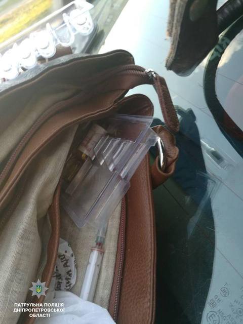 Поліцейські ж викликали слідчо-оперативну групу, котра вилучила у громадянки 2 шприци із залишками невідомої речовини, схожої на наркотичну та ампули. Жінку доставили до Індустріального відділку поліції. Їй загрожує відповідальність за ст.309 ККУ (Незаконне виготовлення, придбання, зберігання наркотичних речовин).