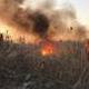 В пожаре никто не пострадал, однако его еще не потушили. На месте работает 3-я пожарно-спасательная часть. Огонь быстро разгорается и распространяется по полю.