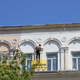 На центральном проспекте продолжают ремонтировать фасады исторических зданий.