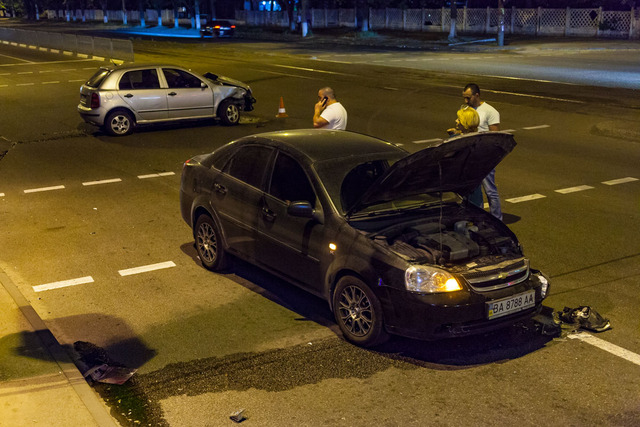 10 мая, около 22:00, на проспекте Богдана Хмельницкого случилось ДТП. Столкнулись Skoda и Chevrolet.