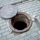 Мужчины «работали», не стесняясь, открытый люк находился прямо на тротуаре центрального проспекта.