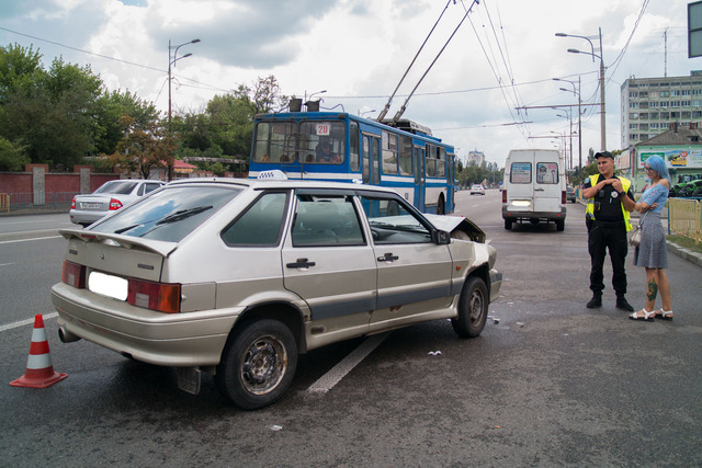 17 июля, около 11:00, на пересечении Слобожанского проспекта и улицы Аржанова столкнулись маршрутка № 31 и такси ВАЗ. В инциденте никто не пострадал. На месте работает патруль полиции.