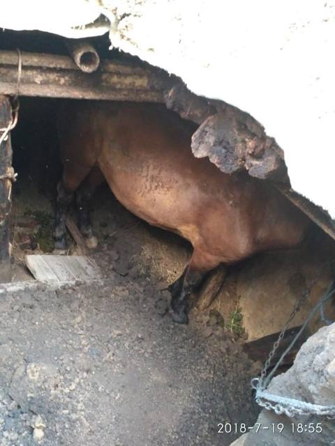 Під час випасу худоби кінь провалився в закритий льох, звідки самостійно не зміг вибратися.