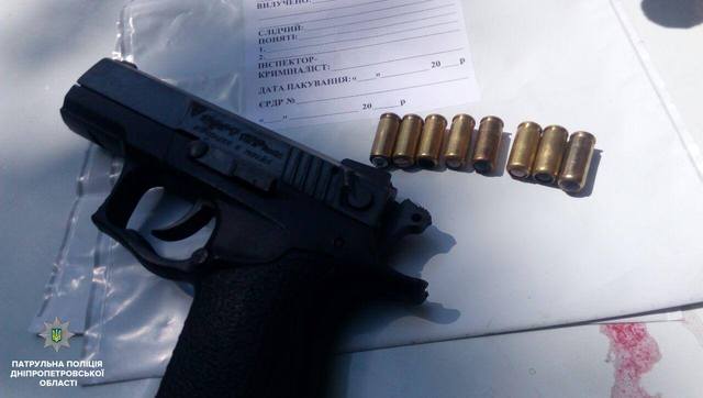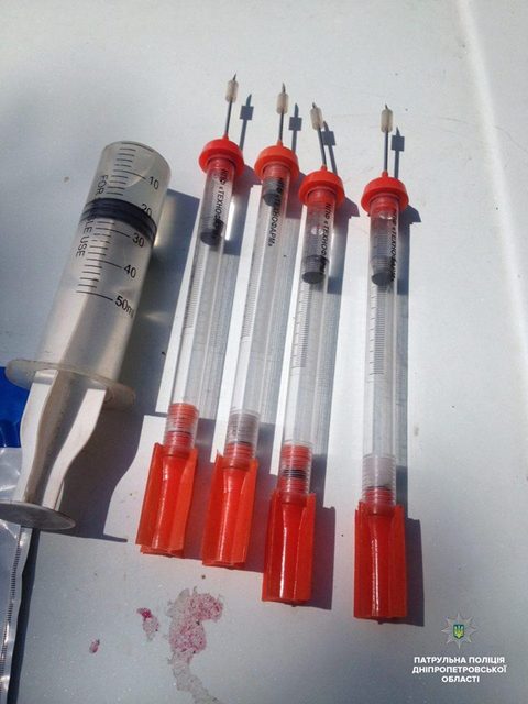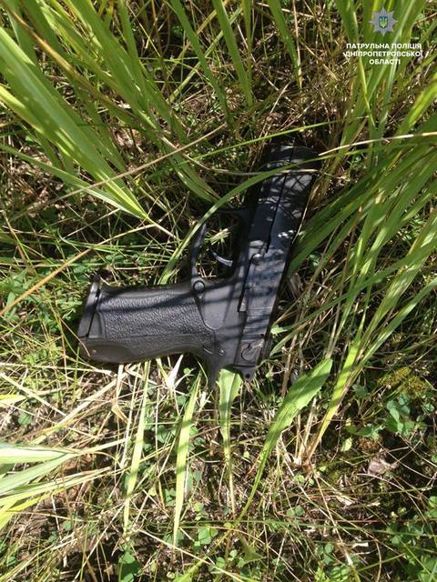 Торівці оглянули місце події і побачили неподалік автомобіля предмет схожий на травматичний пістолет та чохол з переробленою рушницею, а також набої, шприци з невідомою речовиною, схожою на наркотичну. Відповідних дозвільних документів на зброю ніхто з чоловіків не надав.