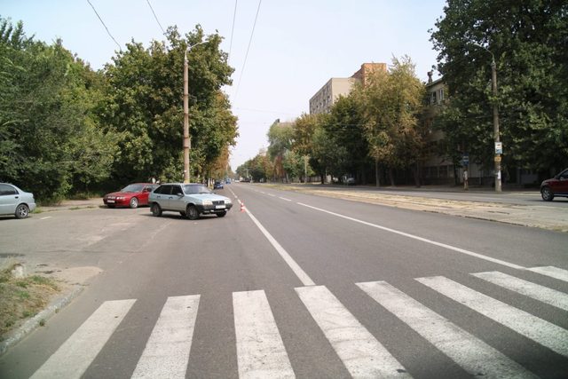 6 сентября на проспекте Богдана Хмельницкого автомобиль ВАЗ сбил женщину, которая, выйдя из трамвая, переходила дорогу. С места аварии пострадавшую забрала «скорая помощь».