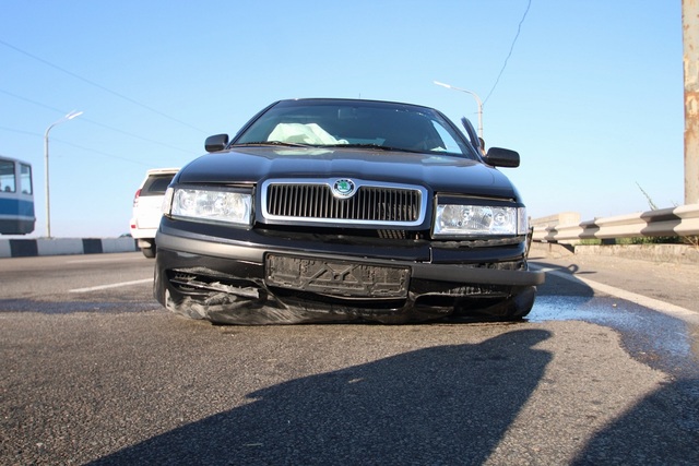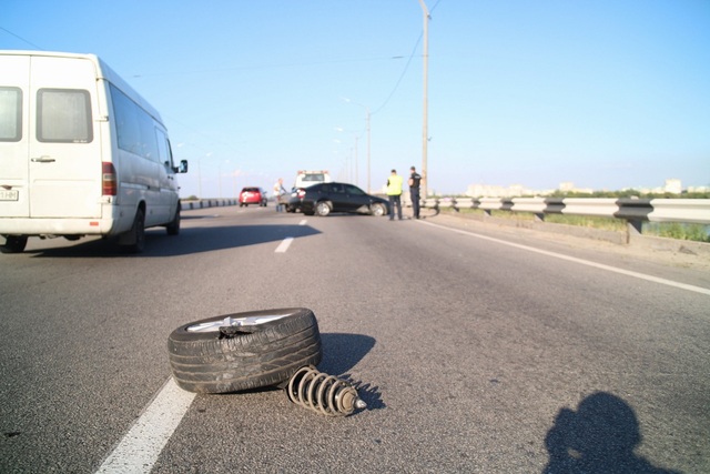 Mercedes Sprinter двигался по мосту. В ходе движения у автомобиля лопнуло колесо и водитель остановился в крайнем левом ряду, чтобы его поменять.В это время в том же направлении ехал автомобиль Skoda. Водитель в последний момент заметил припаркованный Mercedes Sprinter и пытался избежать столкновения. Из-за большой скорости у Skoda отлетело колесо и она врезалась в бетонный отбойник, после чего машину развернуло и откинуло в противоположную сторону.