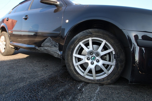 13 сентября в Днепре на Кайдакском мосту у автомобиля Skoda отлетело колесо. Машину чуть не выкинуло за ограждение.