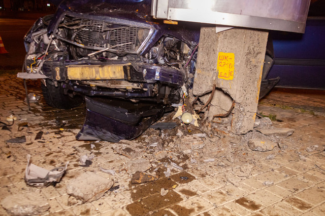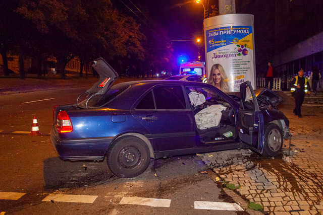 В результате аварии Mercedes врезался в столб, а Uber «выбросило» на обочину.