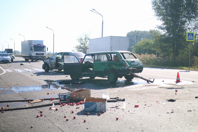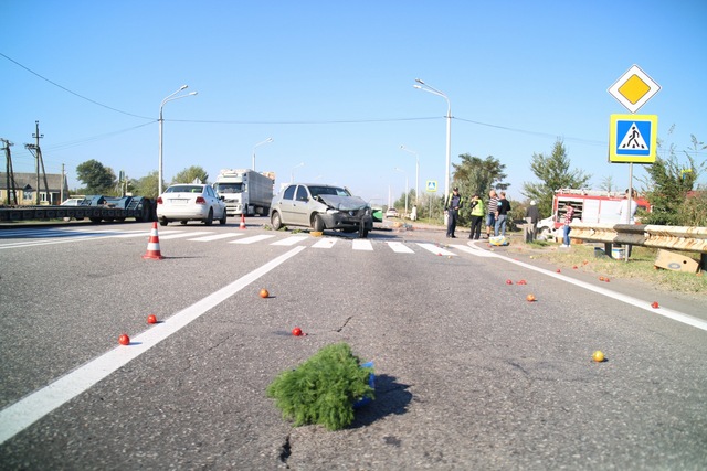 «Женщина не вовремя решила пересечь дорогу по второстепенной», — прокомментировал водитель Dacia Logan.Из ВАЗа высыпались овощи. Скорее всего, водитель ехала на рынок. На месте аварии ожидается приезд следователя.