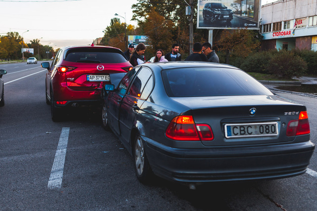 «Я вышел посмотреть что с машиной, успел ее обойти и осмотреть, как через минуту-полторы слышу громкий стук», — говорит водитель Daewoo Lanos.Громкий стук, который услышал Ярослав, — это было столкновение двух машин: Mazda и BMW.