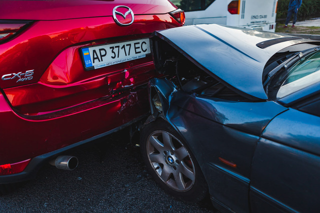 А вот водитель BMW не отличился такой же быстрой реакцией и въехал Mazda прямо в задний бампер. Владелец BMW утверждает, что он пытался избежать столкновения и вывернуть руль в другую сторону, но, увы, ему это не удалось. Все три автомобиля получили повреждения в третьей полосе движения. Водитель Daewoo Lanos и Mazda, как и пассажиры BMW не пострадали.