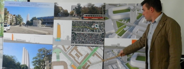 На фоне страстей вокруг предыдущих вопросов практически без возражений был рассмотрен выполненный Михаилом Алиповым проект перспективного 22-этажного офисного комплекса по ул. Костомаровской (бывшая Щорса) на месте пока еще существующей гостиницы «Спорт».