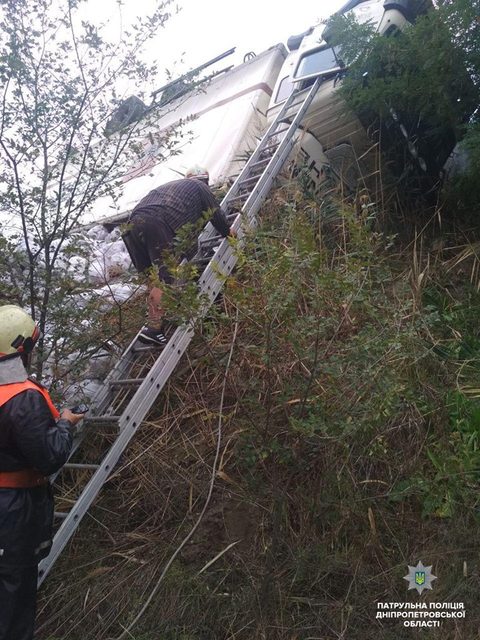 Патрульні прибули на місце події і з'ясували, що 53-річний водій перевозив вантажівкою Mercedes моркву. Повертаючи на трасу він не впорався з керування й таким чином автомобіль перекинувся у кювет. Чоловік не міг самостійно вибратися з кабіни.