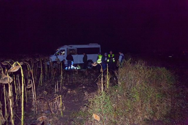 Mercedes-Sprinter по неизвестным причинам вылетел на обочину. Судя по повреждениям на машине, Sprinter перевернулся несколько раз.