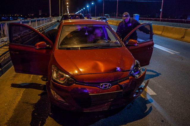 5 октября около 3:20 экипаж патрульной полиции стал свидетелем того, как женщина на Hyundai, выезжавшая на Центральный мост, снесла железный столб с дорожными знаками. После аварии она продолжила ехать в сторону правого берега. Полицейские остановили автомобиль приблизительно на середине моста.