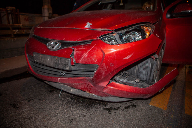 После аварии Hyundai сильно пострадал. У автомобиля разбита левая передняя фара, поврежден капот и пробит радиатор. С места происшествия Hyundai забрал эвакуатор.