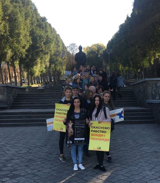 18 октября участники «ходы» с тематическими плакатами прошли колонной по центральному городскому скверу от памятника Матери до Майдана Героев. Цель такой акции – привлечение внимания к проблеме торговли людьми, а также информирование граждан о формах этого преступления и о том, где пострадавшие могут получить психологическую, медицинскую, юридическую или материальную помощь.
