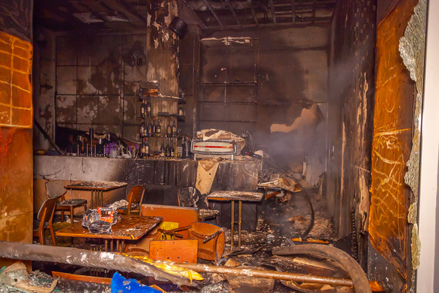 Патрульные перекрыли участок дороги от улицы Воскресенской. По приезде спасатели занялись тушением пожара. Имущество заведения заметно пострадало. Патрульные действовали совместно со спасателями, взяв на себя эвакуацию людей из жилого дома.